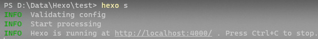 我们第一次运行我们安装好的博客,Ctrl + 鼠标左键 能够打开运行在本地的博客网页地址。